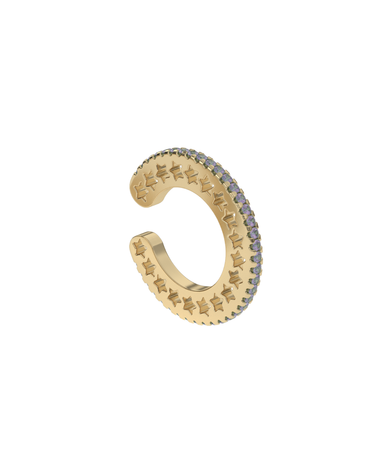 Made of 14k or 18k yellow gold, these ear cuffs feature rounded stars from end to end and a choice of precious or semi-precious stones.